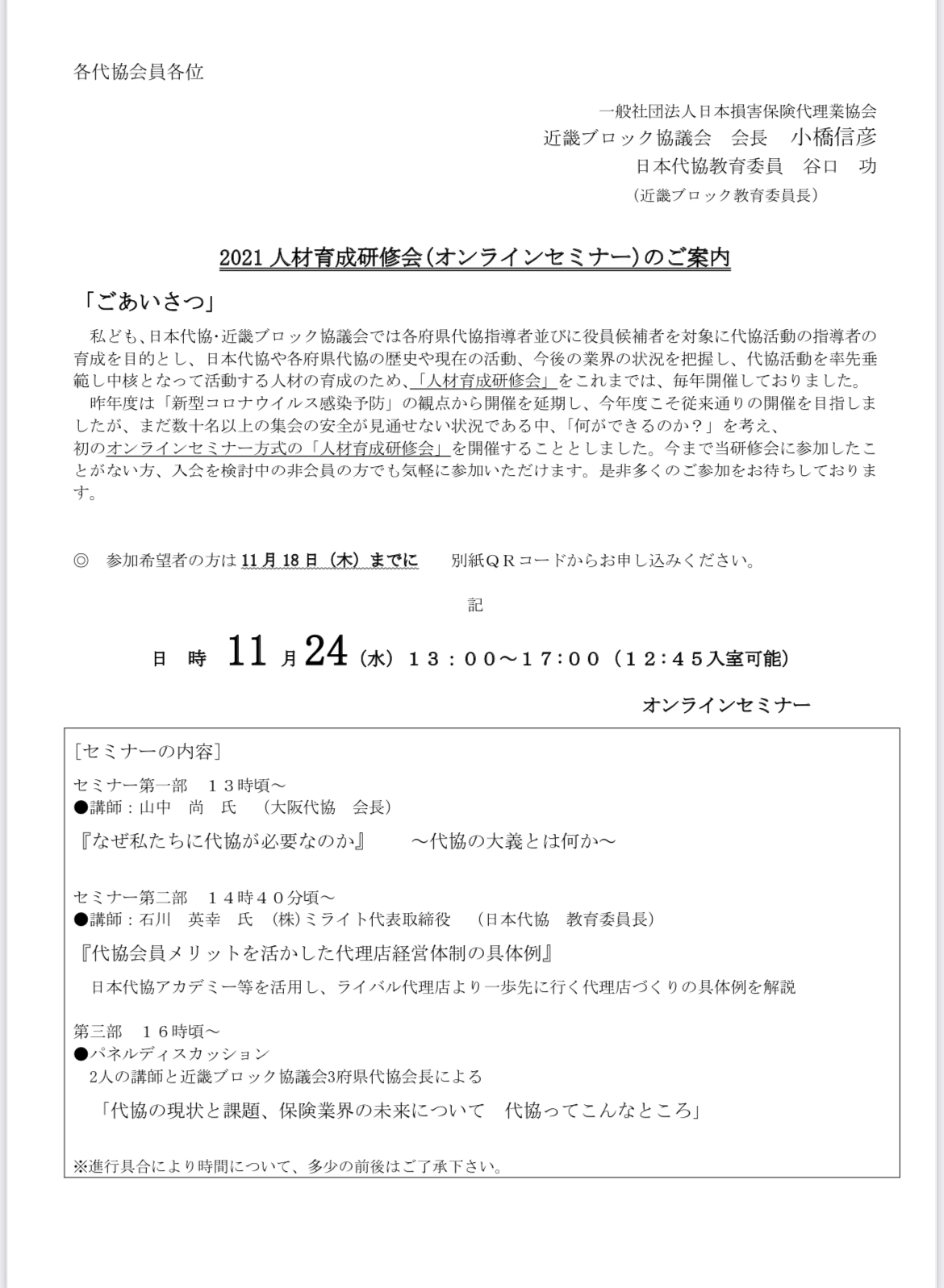 一般社団法人 日本損害保険代理業協会理事 教育委員長